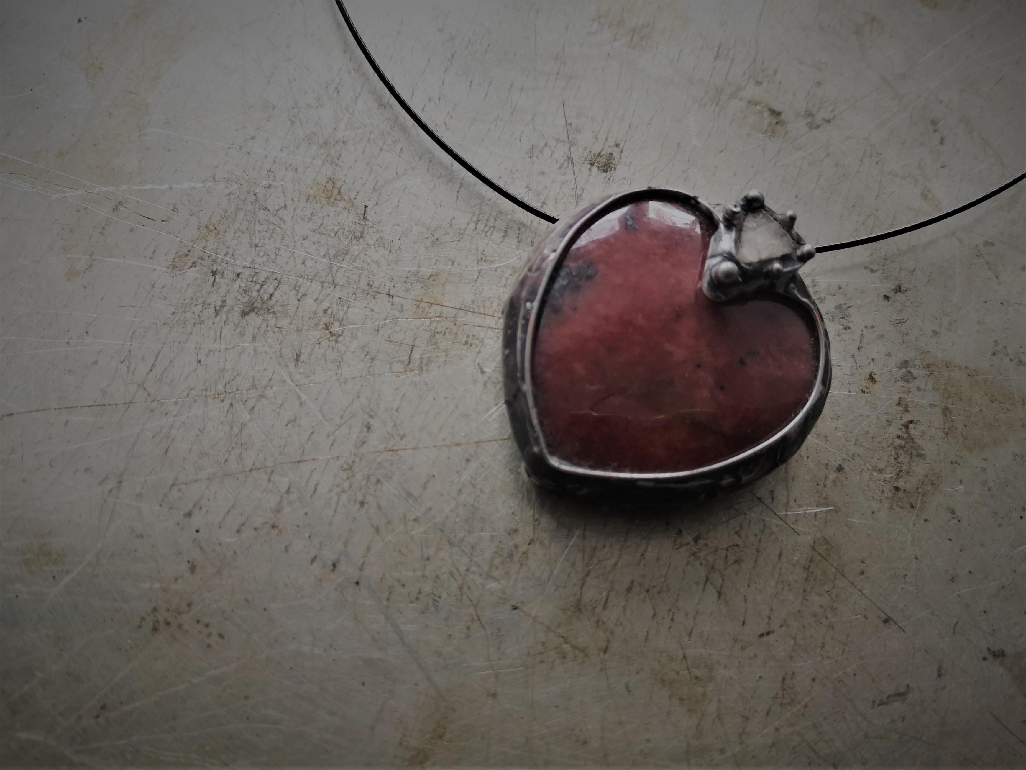 Vitrážový šperk s rodonitem. Dárek vhodný na Valentýna.