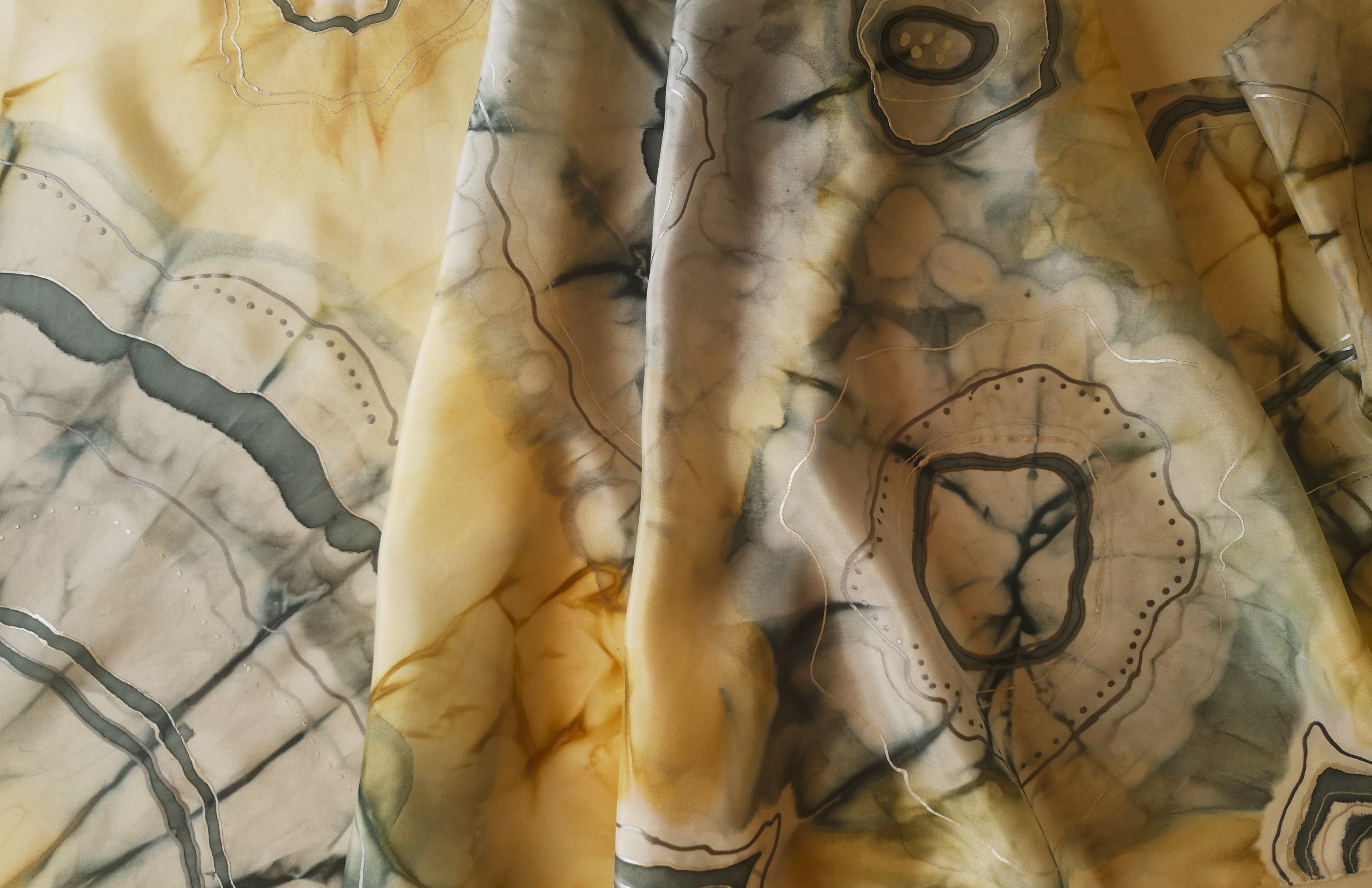 ručně malované hedvábí je nutno prát ručně v mýdlové vodě a žehlit přes pečící papír, aby se kontura nepřilepila na žehličku. Žehlí se vlhké na 150 °C - což je záruka pravosti hedvábí. Žádná textilie, vyrobená z umělých vláken, tuto teplotu nesnese.